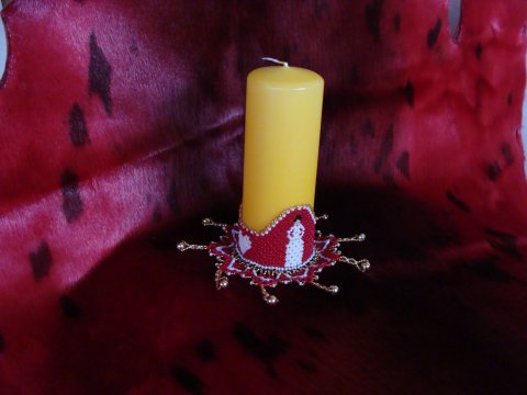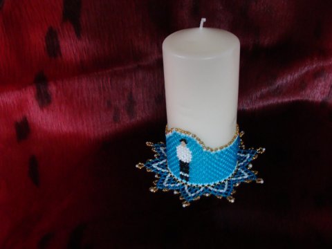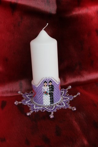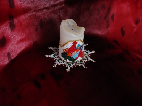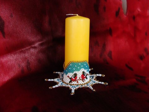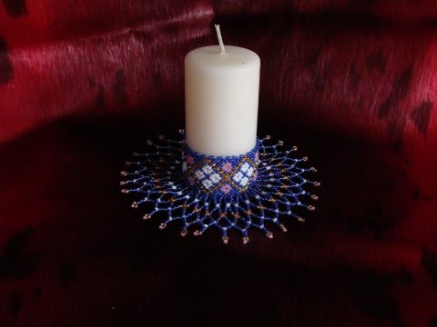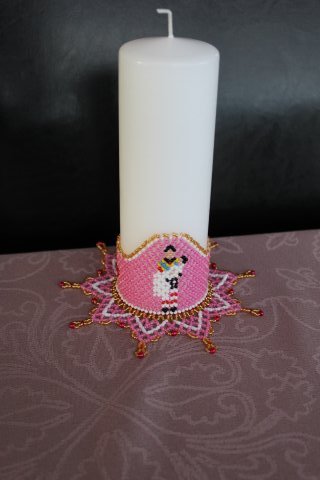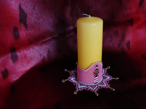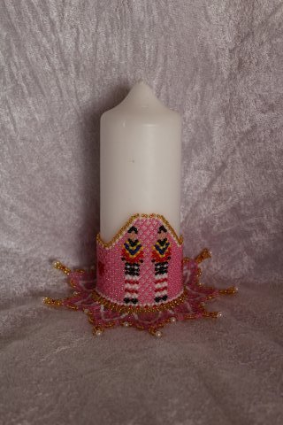 Lysestager syet af perler med forskellige størrelse i højde og diameter kan selvfølgelig bestilles i den farve man ønsker. De lysestager der måler 5,6 i diameter kan også syes til 6,7 i diameter. © Copyright Nukaaraq-Naja.dk