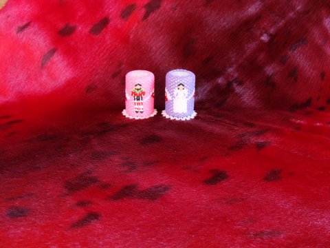 Salt og pebersæt syes efter kundens ønsker ved bestilling i ønskede farver og motiver. Salt og pebersæt er lavet af porcelæn og overtrækkes med perler. Vi har også færdigsyede med grønlandske motiver og som kan bruges ved mærkedage. Salt og pebersæt er af porcelæn og overbetrukket med perler. størrelsen er (h:6 b: 3,5cm).