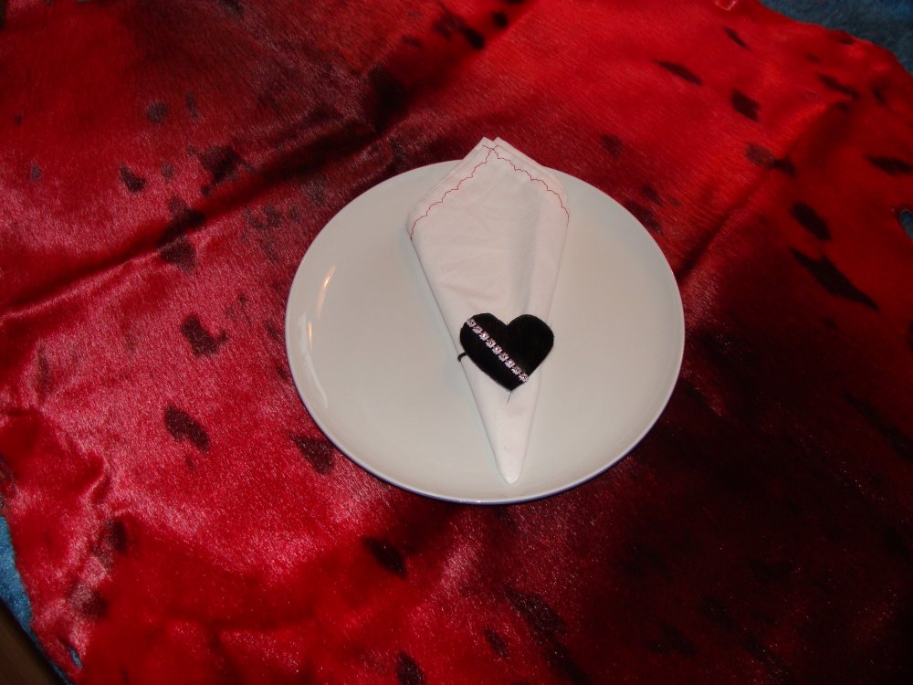 Hjerte servietring af sort farvet sælskind med glimmer.