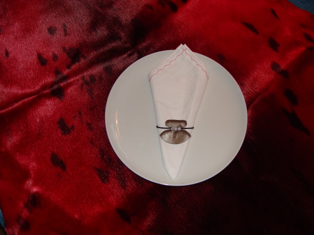 Ulo servietring af naturfarvet sælskind med glimmer.
